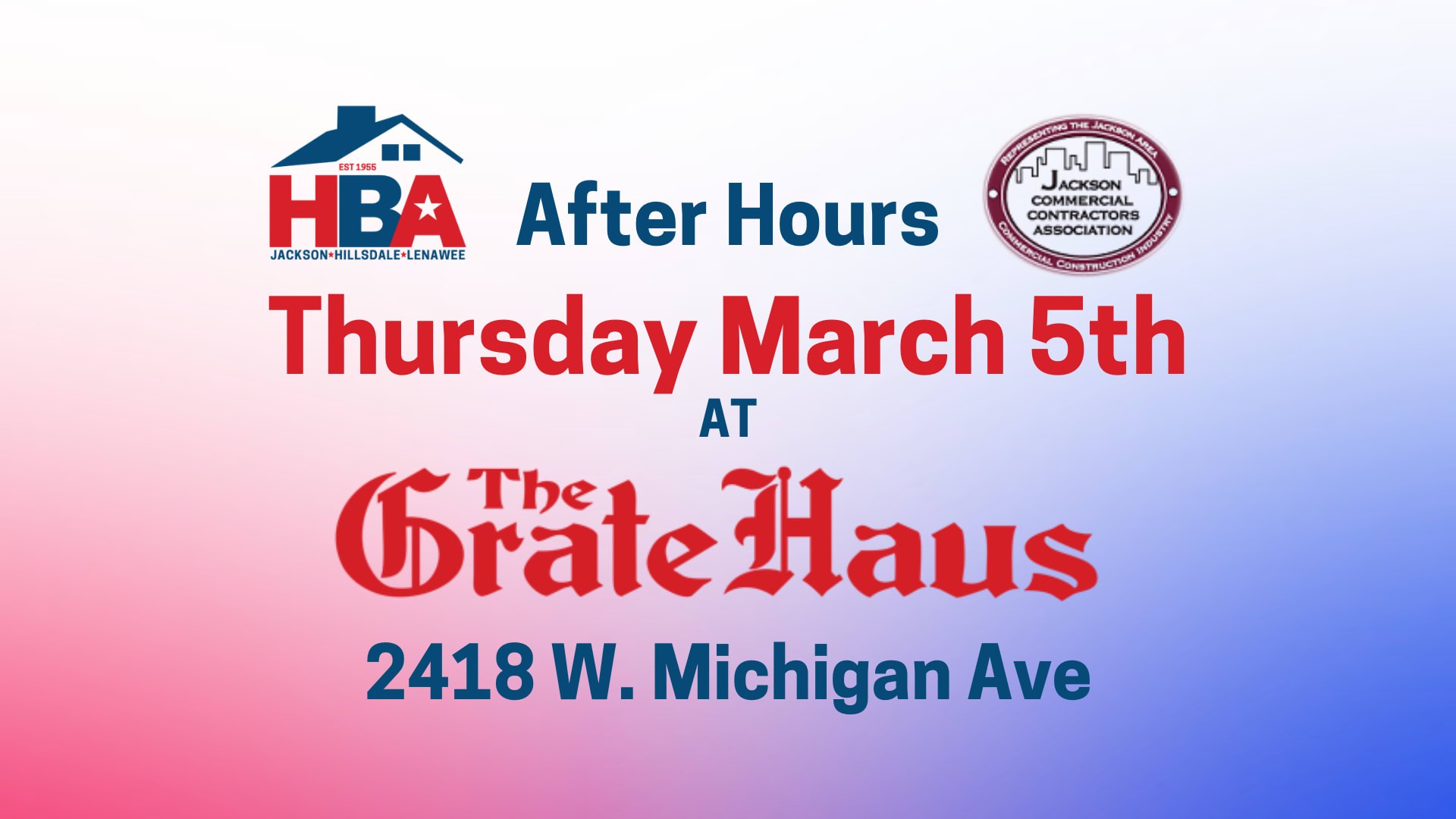 • March 5 - After Hours with HBAJ & JCCA at the Grate Hause from 5-7 pm